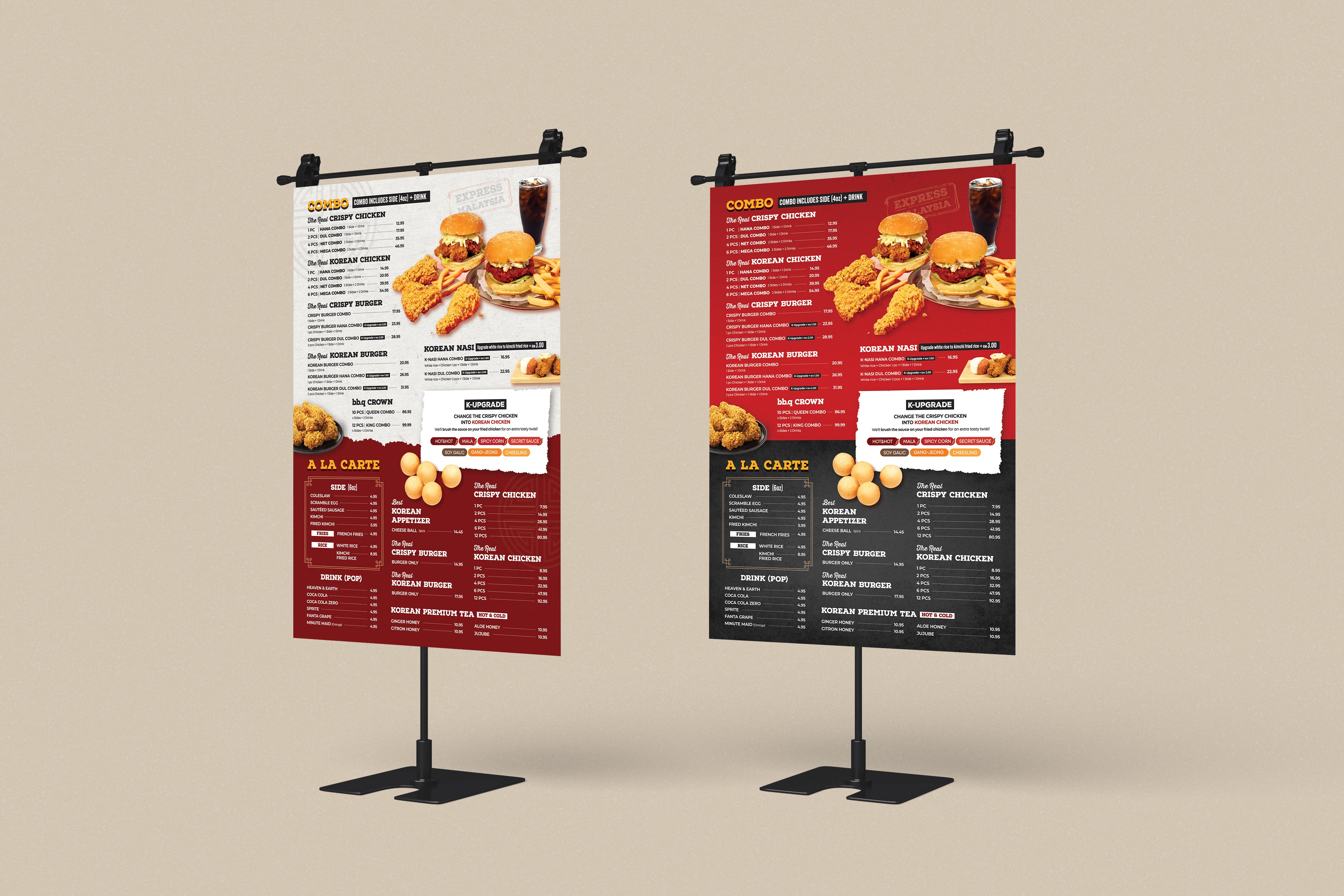 Design various graphic works such as posters, menu boards, and videos needed to open BBQ Malaysia branch.