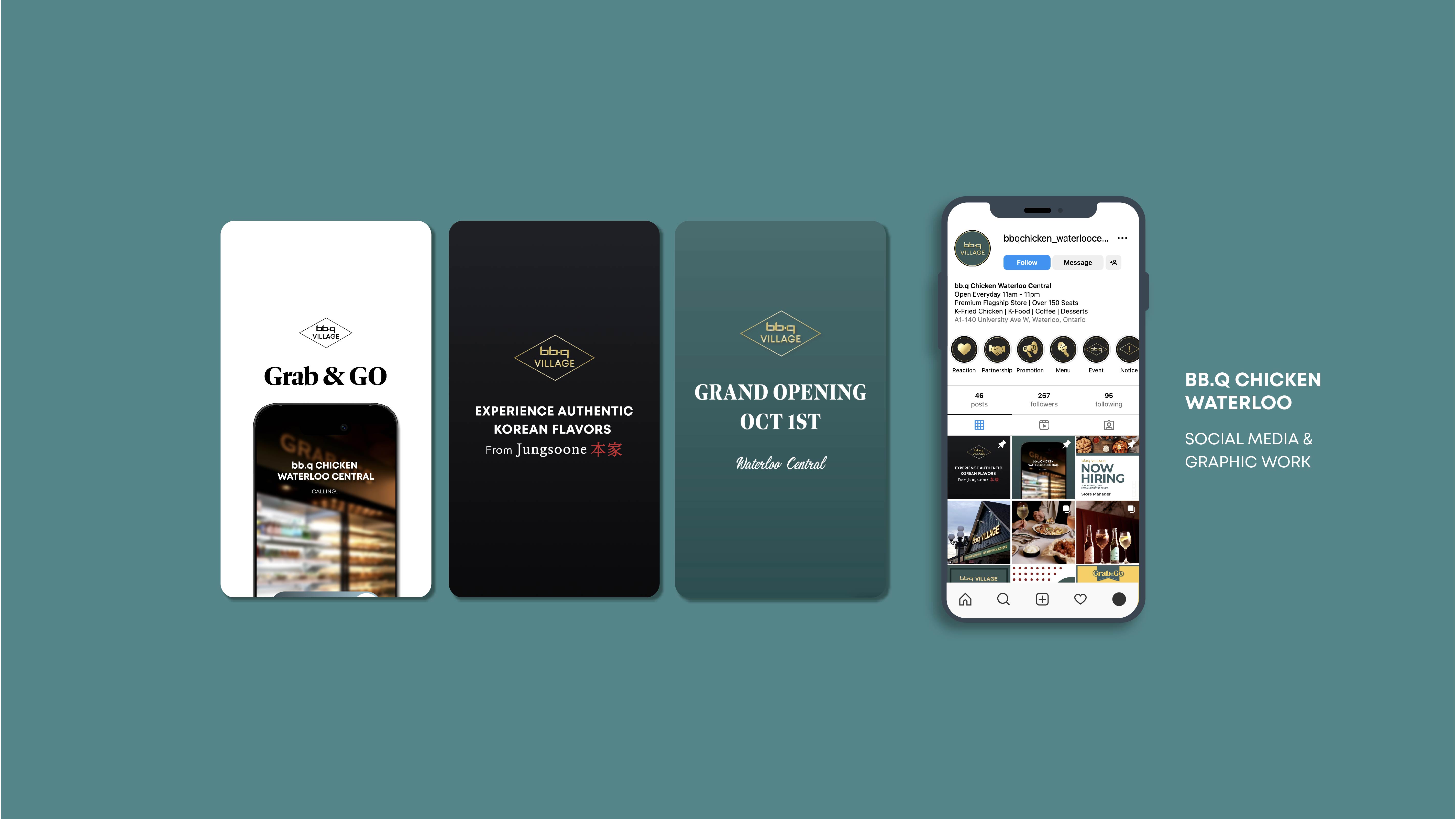 I designed tailored Instagram concepts for the different bb.q Chicken locations (CA, Waterloo, Elm, malaysia), ensuring that each feed reflected the specific local branding and audience. I focused on creating visually cohesive designs that aligned with the brand’s overall aesthetic while adapting to regional differences in customer preferences and engagement.